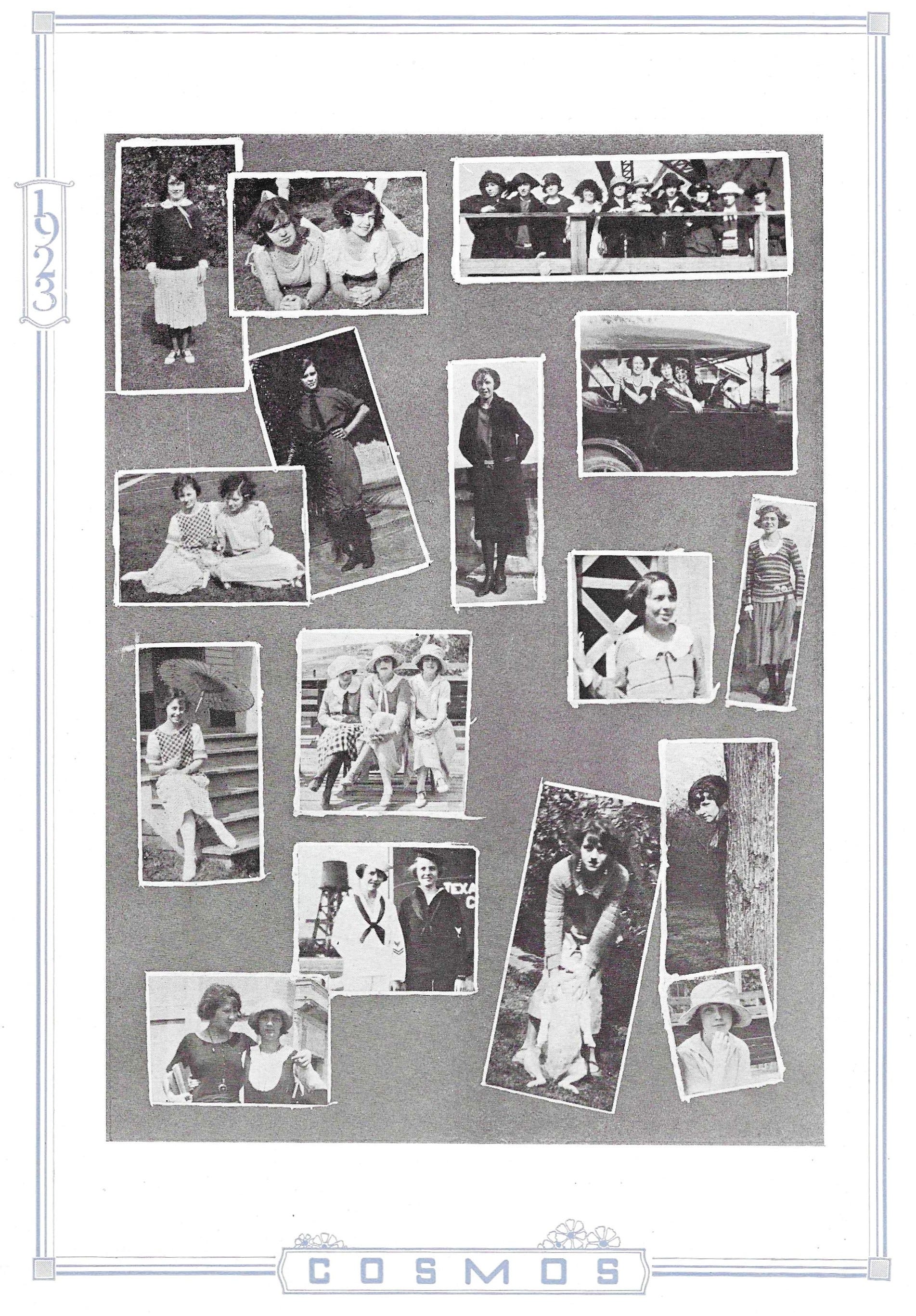 I didn’t have any particular expectations when I opened the 1923 Cosmos. I wanted to look at the fashions worn by 1920s teenagers, their preferred hairstyles, their clubs, their sports—all of high school life that Cosmos saw fit to print. I also scanned the students’ names, to see if any familiar figures from Houston history jumped out. I found Iva Farenthold, who may have been related to the prominent local political family that produced Sissy Farenthold and the disgraced Blake Farenthold, and Frances Sakowitz, who must have belonged to the family that owned the now defunct Sakowitz department stores. I used to get my school clothes from Sakowitz.