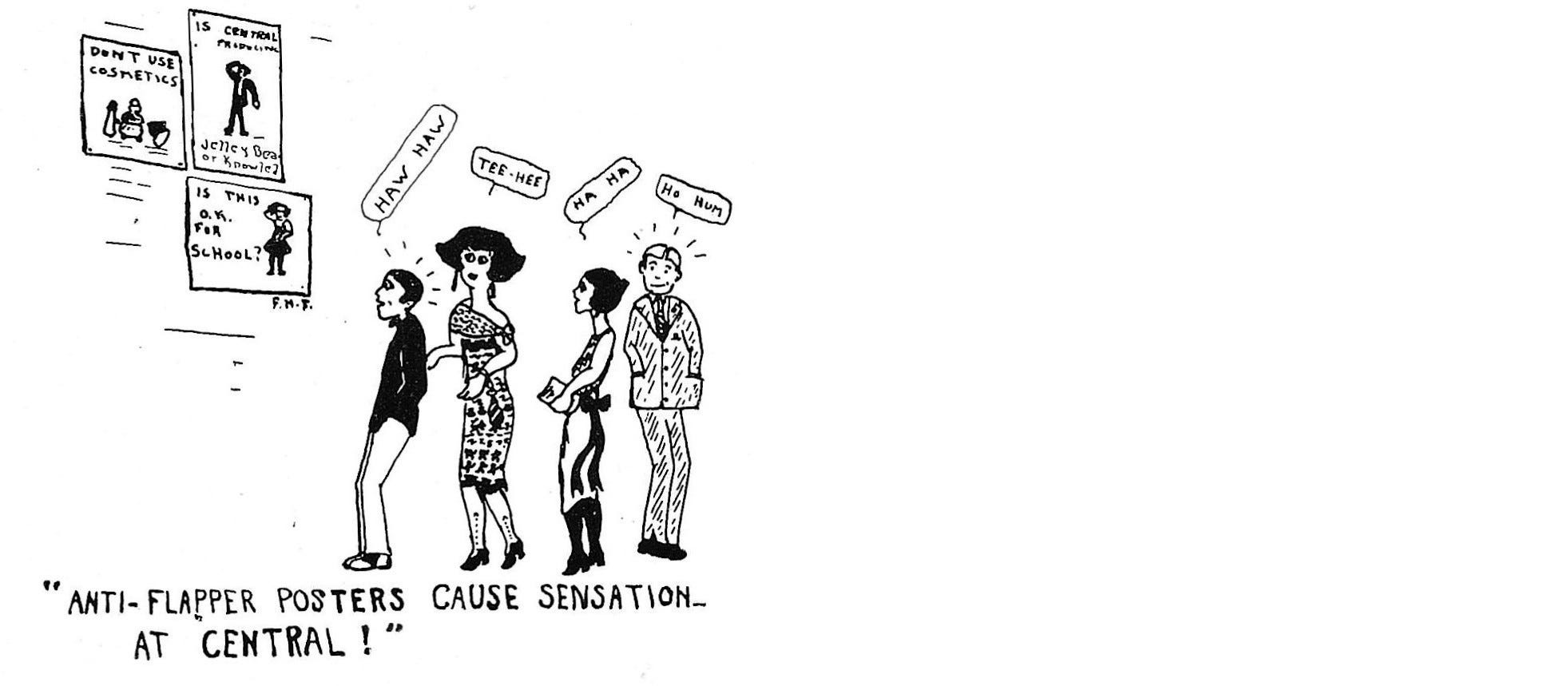 The presence of flappers at Central High School was not uncontroversial, as seen in the following cartoon in the Tiger’s Claw section.