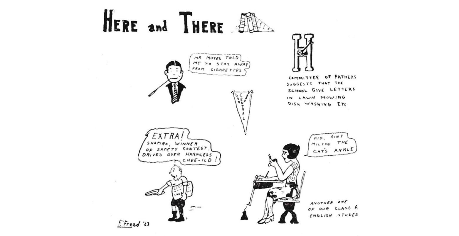In this small selection of gags, I think Shapiro is Mollie Shapiro, a girl in Freed’s class, and Mr. Moyes is the dean of boys and a fairly strict looking character, going by his photo in Cosmos.