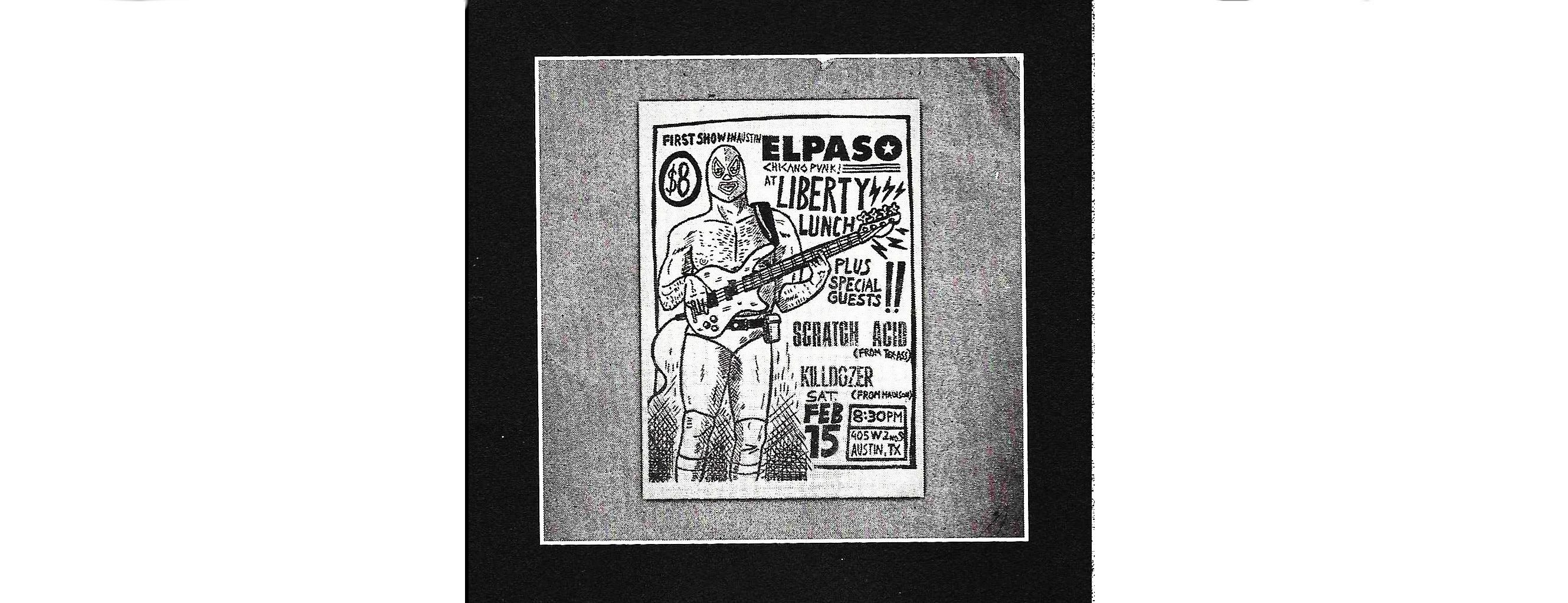 Daniel and Ritchie gradually recruit a small cohort of fellow punk rock enthusiasts to form a band. Daniel came up with a name for the band after creating advertisements promoting El Paso as an assignment for a design class. He joined the two words “El” and “Paso” in big all caps Futura Bold—ELPASO. That becomes the name of the band.